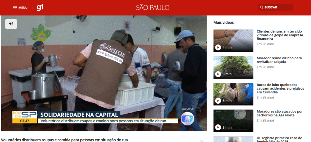 Com mais de 20 anos de atuação, o Sefras, instituição que tem como propósito acolher, cuidar e defender os mais vulneráveis, promovendo a justiça socioambiental à luz dos valores Franciscanos, é cliente da Oliver Press desde 2022, quando chegou com o desafio de ampliarmos sua visibilidade na mídia – especialmente televisiva –, por meio de pautas relevantes e oportunas, destacando seus serviços em São Paulo e Rio de Janeiro.